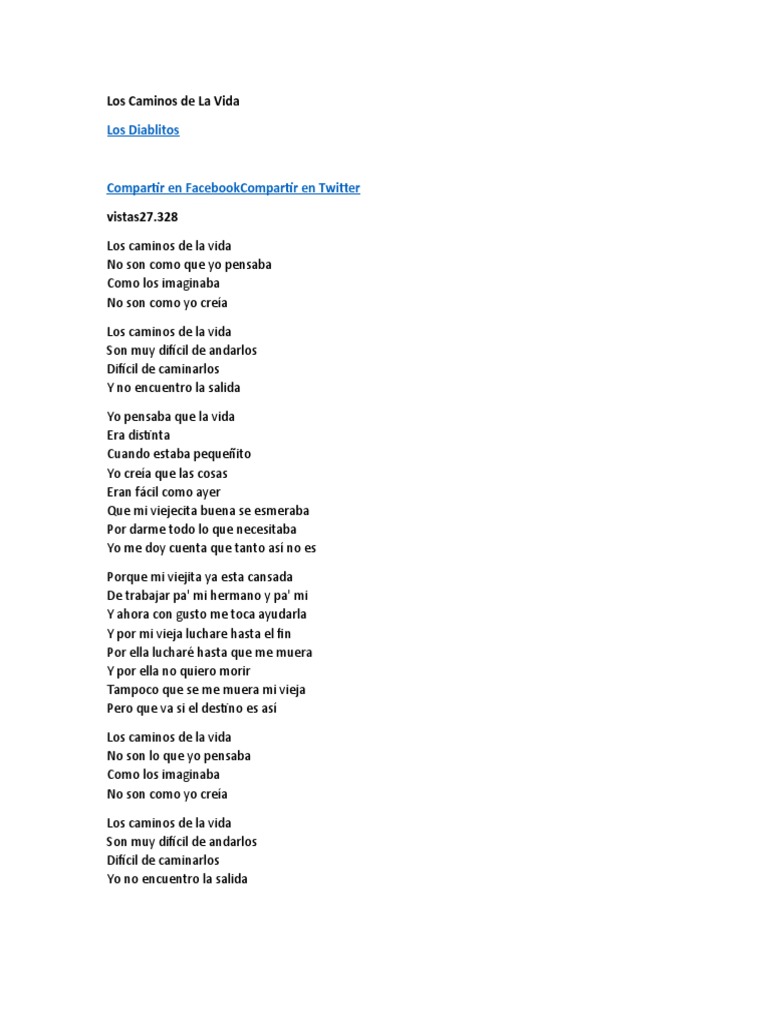 Vicentico Los Caminos De La Vida Lyrics Lyric Quotes Lyric Poetry from i.pinimg.com Yo sufro mucho madrecita al verte. Sol mim los caminos de la vida re no son como yo pensaba do como los imaginaba sol no son como yo creia mim los caminos de la vida re son muy dificil de andarlos do dificil de caminarlos sol yo no encuentro la salida mim re yo pensaba que la vida era distinta. Yo pensaba que la vida era distinta como cuando era chiquitito yo creía que las cosas eran fáciles como ayer que mi madre preocupada Los caminos de la vida no son como yo pensaba no son como imaginaba no son como yo creía. Por darme todo lo que necesitaba. Los caminos de la vida no son lo que yo esperaba no son lo que yo creía no son lo que imaginaba. Que mi viejecita abuela se esmeraba. Yo pensaba que la vida era distinta cuando era chiquiti.to yo creia que las cosas eran fácil como ayer, que mi madre preocupada se esmeraba por darme todo lo que necesitaba y me doy.